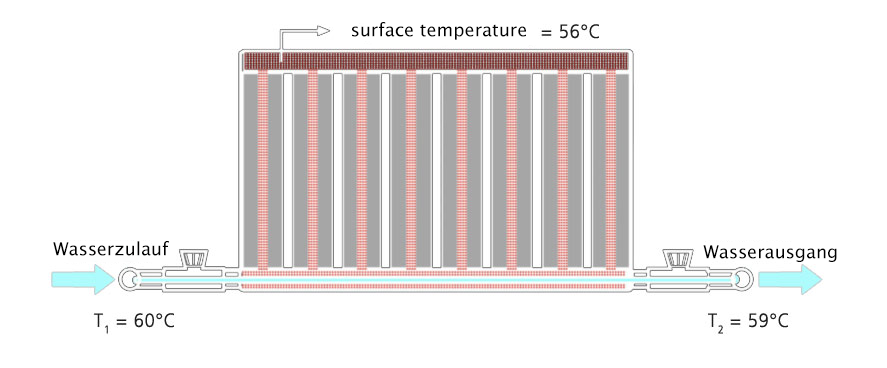 Die Erwärmung der Heizfläche des Heizkörpers erfolgt durch ein ungefährliches Wärmeträgermedium.